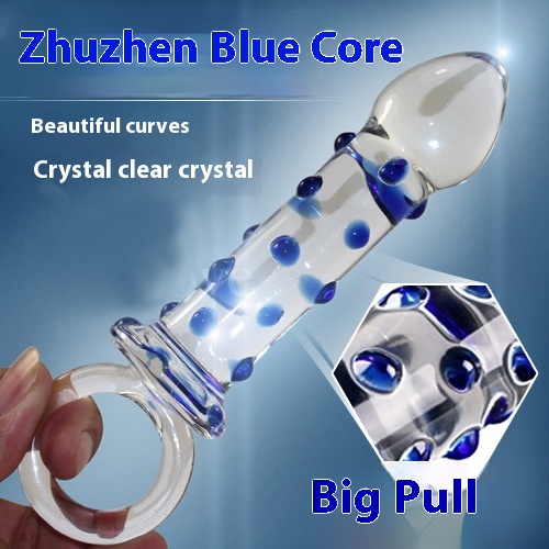 Bead Lock Blue Core Hand Pull Type Glass Dildo Product